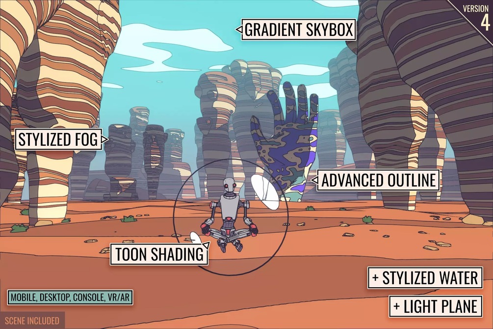 - New demo scene "Desert" showing a Moebius-esque style using the Outline image effect
