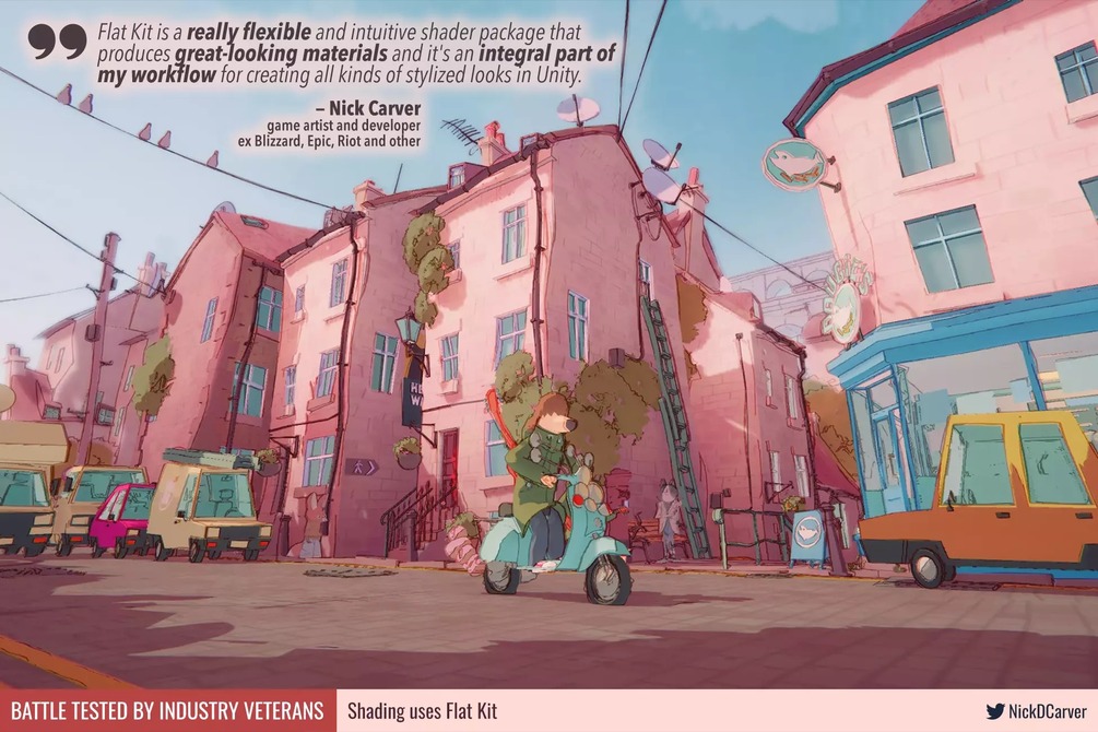 Flat Kit is a complete solution to achieve the stylish cel-shaded look: shaders, models, image effects, presets, examples.